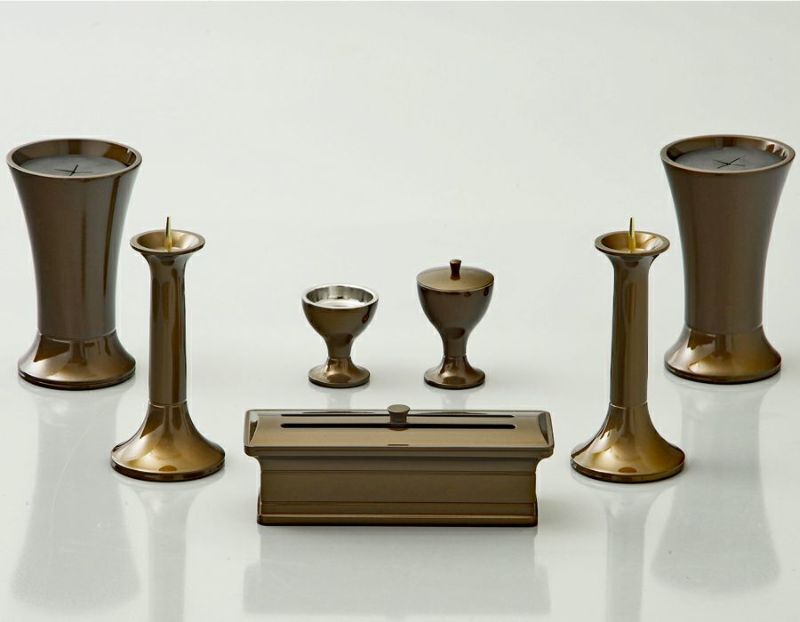 アルミ製/仏器・茶器・灯立×2・花立×2・香炉/オーク色/送料別途