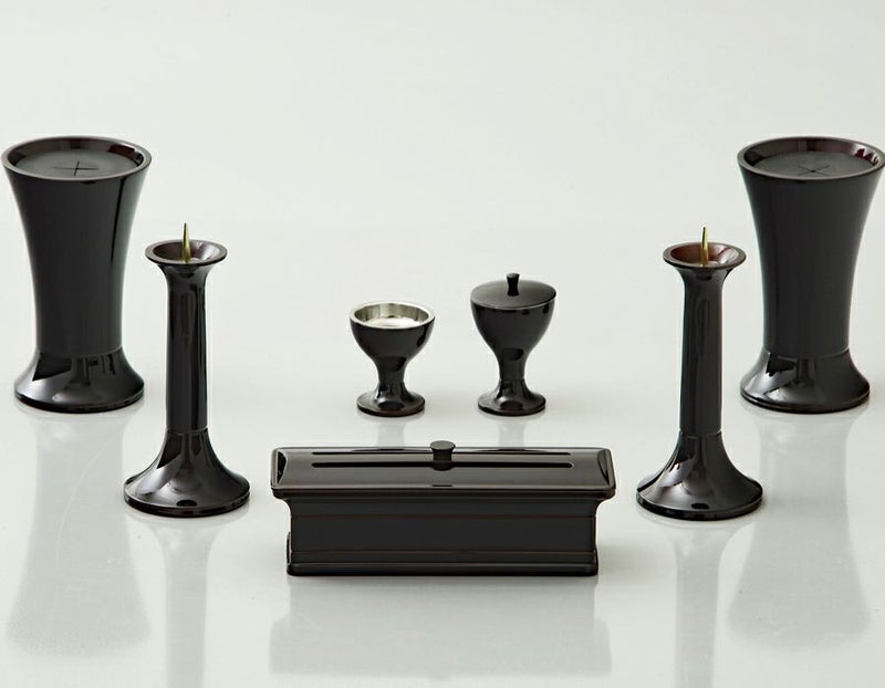 新品仏壇に、現在お使いのお仏壇に買い替えてセットすればすっきりお仏壇を引き立ててくれます。この仏具セットは、中型仏壇(家具調仏壇から小さめの厨子型仏壇)までお使いいただけるアルミ製の高級感のある仏具セットになります。