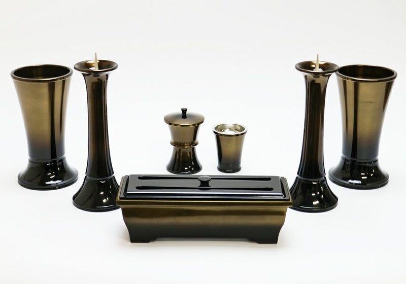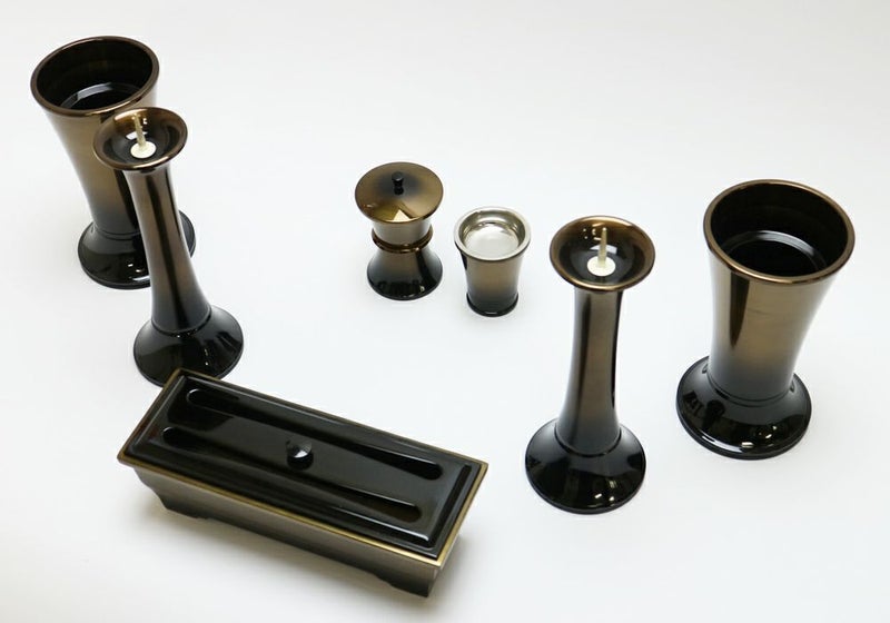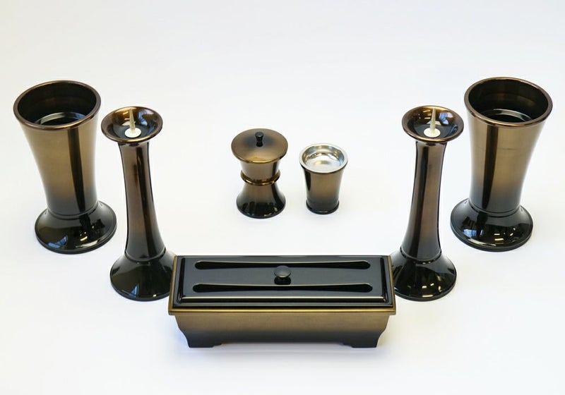 高岡銅器製/仏器・茶器・灯立×2・花立×2・香炉/中型仏壇用/ボカシ色/送料別途