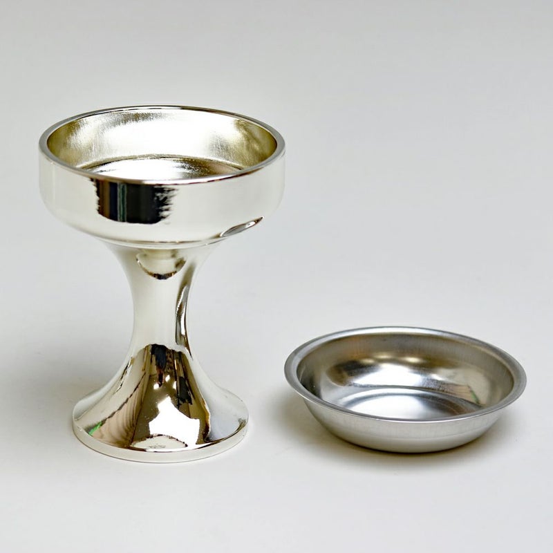中~大型仏壇(大きめの家具調仏壇から厨子型仏壇)までお使いいただける合金製(シルバーメッキ)の銀色に輝く高級感のある仏器(ご飯入れ)になります。