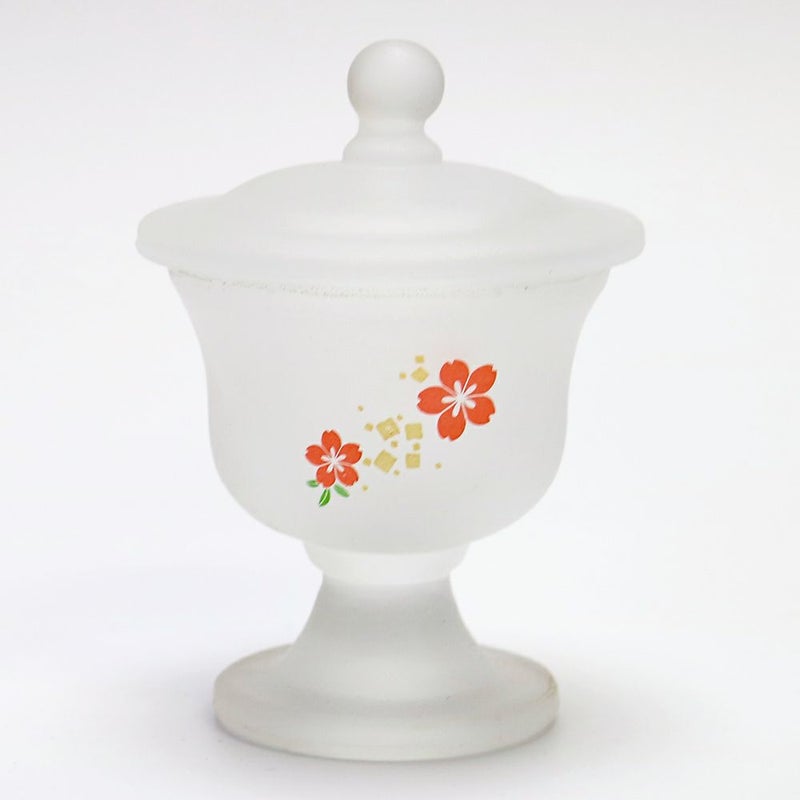 ガラス製/茶器(お水入れ)/桜柄/小型・中型仏壇用/送料別途
