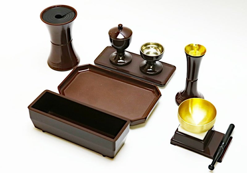 この仏具セットは、小~中型仏壇(ミニ仏壇からコンパクト家具調仏壇)までお使いいただけるプラスティック製のすっきりとしたオシャレな仏具セットになります。