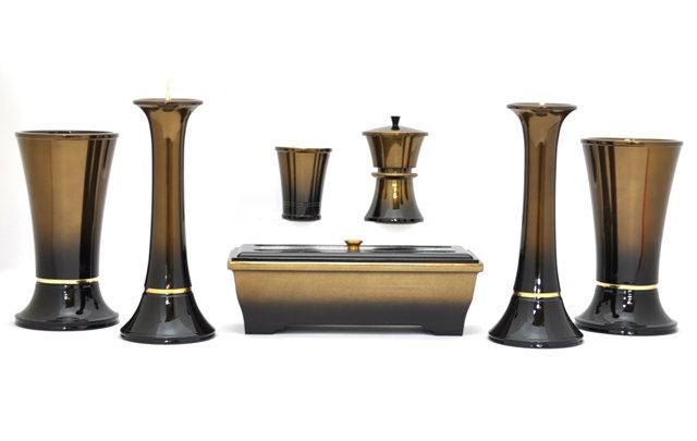 高岡銅器製/仏器・茶器・灯立×2・花立×2・香炉/中型仏壇用/ボカシ色/送料別途