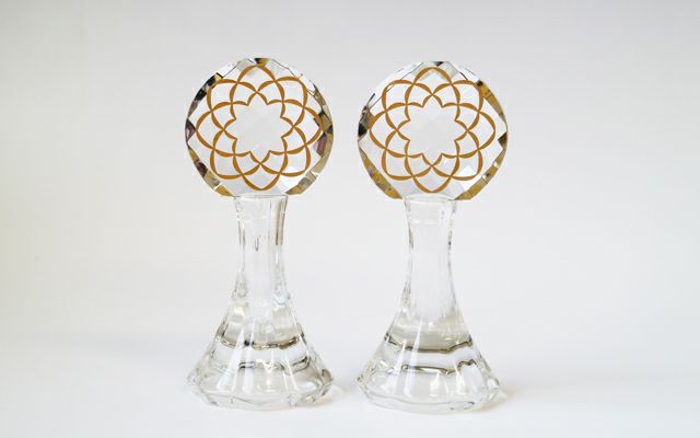クリスタルガラスの高級八葉徳利です。家具調仏壇や厨子型仏壇にも輝きをプラスしてくれます。八葉マークの部分が半球のような形をしているのが特徴です。