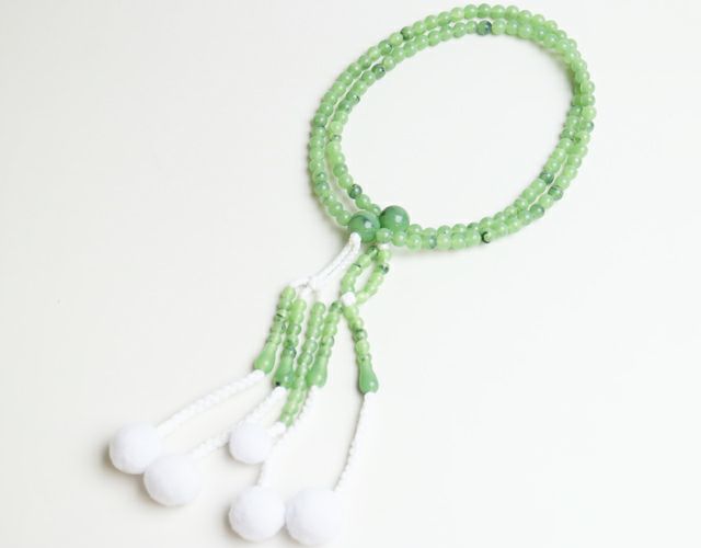 PC(プラスティック製)雲ヒスイは約36cm もめん房でしっかり作られています。 マスカットのような新鮮な色合い、ちょっとおしゃれな念珠に仕上げました。 日も新鮮な一日のスタートをすばらしい勝利の一日が始まります! メール便配送可能商品です。 ※揉んだり引っ張ったりしますと念珠の紐が切れてしまうので気を付けてご使用ください。