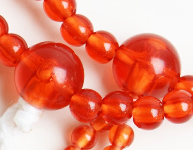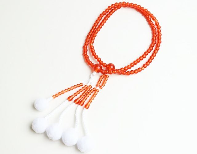 PC(プラスティック製)メノウは約29cm もめん房でしっかり作られています。 情熱の赤、生命力の赤の色合の念珠に仕上げました。 あなたの情熱の一念の唱題で常勝の歴史をいざ築かん! メール便配送可能商品です。 ※揉んだり引っ張ったりしますと念珠の紐が切れてしまうので気を付けてご使用ください。