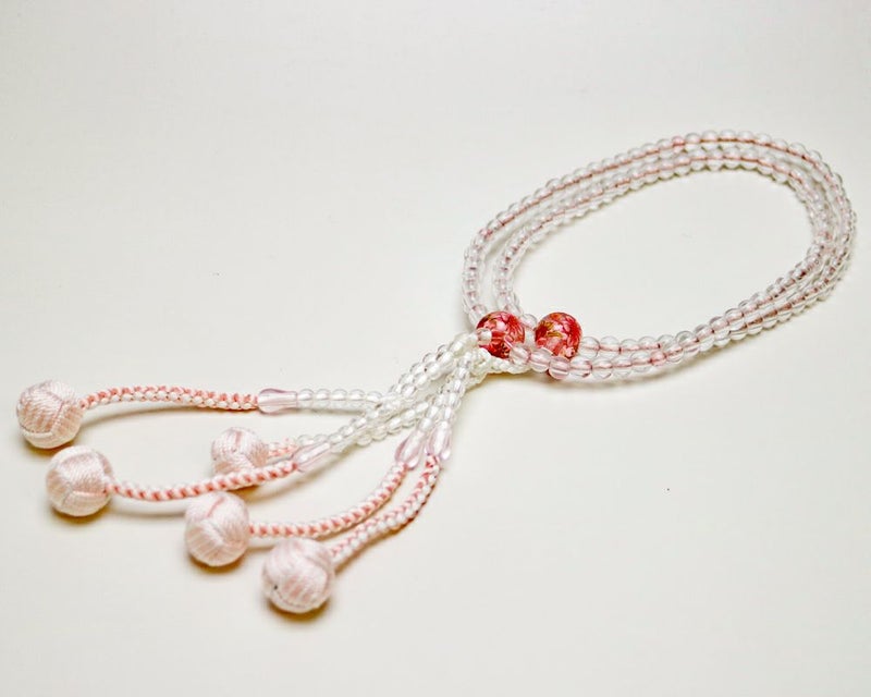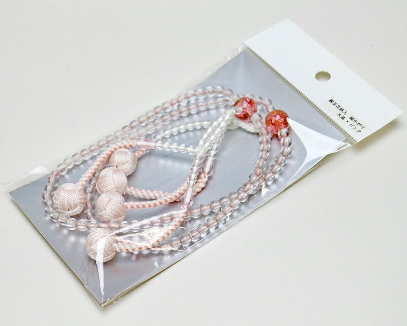 創価学会 念珠 縞かがり 水晶×ピンク 白百合 8寸 女性用
