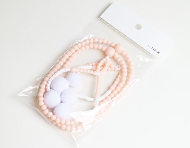 PC(プラスティック製)素敵なピンク色仕上げの念珠は約30cm もめん房でしっかり作られています。 インカローズの気品ある色合に仕上げました。 インカローズは女性に大人気のピンク色です。 やさしいピュアーな人生を実現してください! メール便配送可能商品です。 ※揉んだり引っ張ったりしますと念珠の紐が切れてしまうので気を付けてご使用ください。
