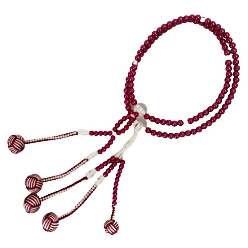 ボンボン部分がしっかりと編まれております。 こちらの編み方を、「かがり梵天房」(かがりぼんてんふさ)と言い、綿の房と違い、堅くしっかり編まれておりますので、型崩れせず、長持ちします。 パール色のレッドパープル色になります。 落ち着いた色合いで女性に大人気の商品となっております。 しっかりした商品なので、プレゼントにも最適です。 親玉から親玉の長さは約28cmです。 メール便配送可能商品です。 ※揉んだり引っ張ったりしますと念珠の紐が切れてしまうので気を付けてご使用ください。