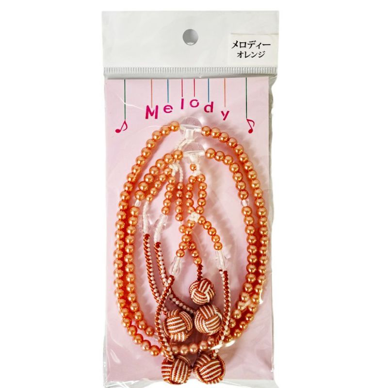創価学会 念珠 メロディー オレンジ かがり梵天房 8寸 女性用