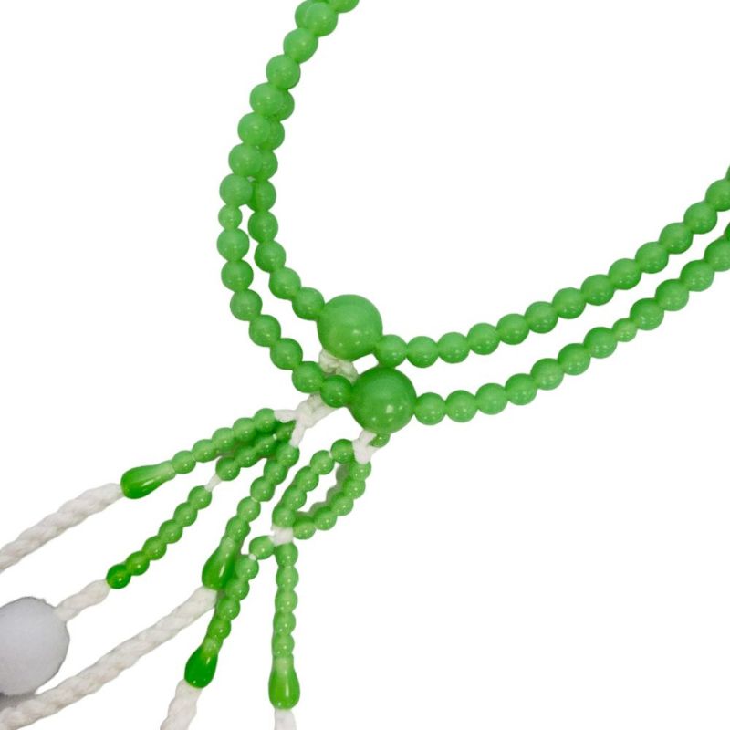 PC(プラスティック製) ヒスイは約28cm もめん房でしっかり作られています。 ヒスイのきれいな色合いに仕上がりました。 自由に願いを叶えられる、そんなあなたに! メール便配送可能商品です。 ※揉んだり引っ張ったりしますと念珠の紐が切れてしまうので気を付けてご使用ください。