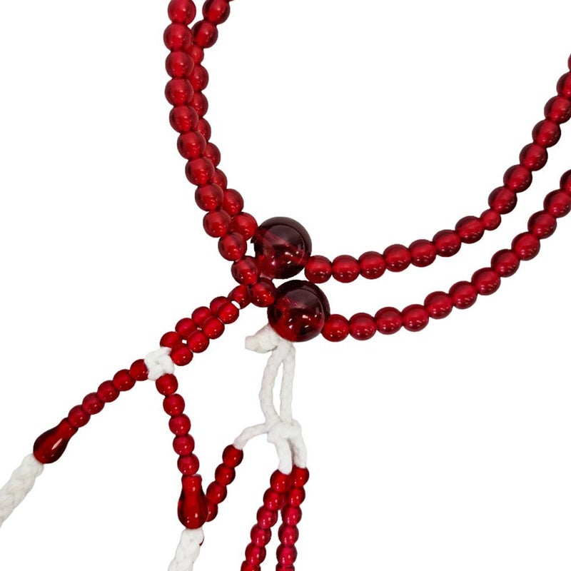 PC(プラスティック製)PCガーネットは約28cm 、もめん房でしっかり作られています。 ガーネットの高貴な色合いを再現いたしました。 個性豊かな人生にこそふさわしい念珠です。あなたの夢実現のために! メール便配送可能商品です。 ※揉んだり引っ張ったりしますと念珠の紐が切れてしまうので気を付けてご使用ください。