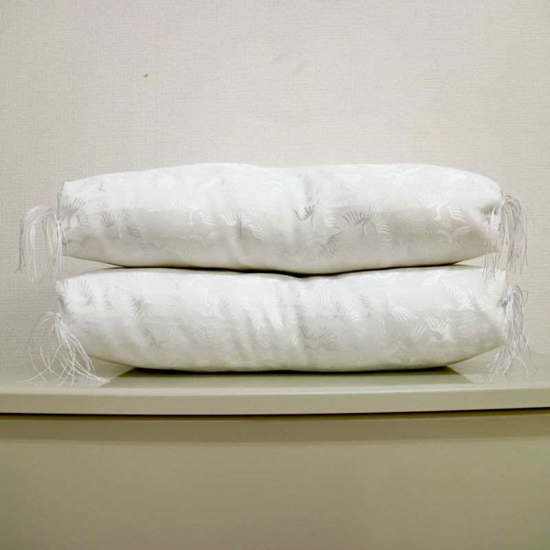 鶴刺繍/1対(2枚組)/房付き/13号/直径約43cm/ホワイト色