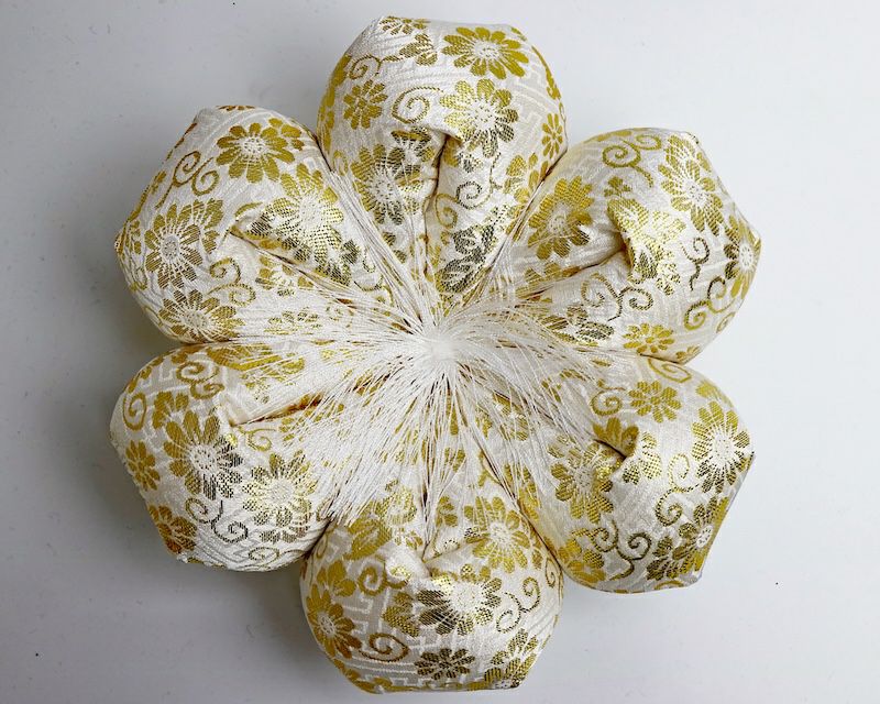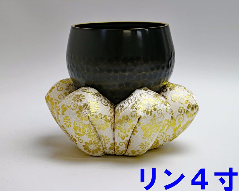 白色のリン布団に金色の花刺繍が施された高級リン布団です! 4寸のリンにピッタリです。 手作り商品の為、サイズ数センチの誤差がございます。