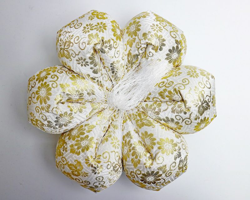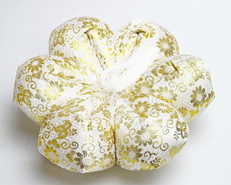 白色のリン布団に金色の花刺繍が施された高級リン布団です! 5寸のリンにピッタリです。 手作り商品の為、サイズ数センチの誤差がございます。
