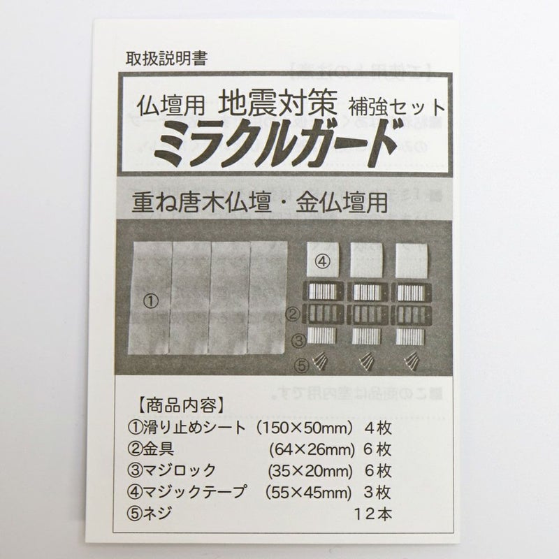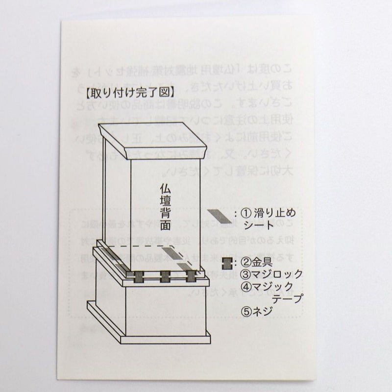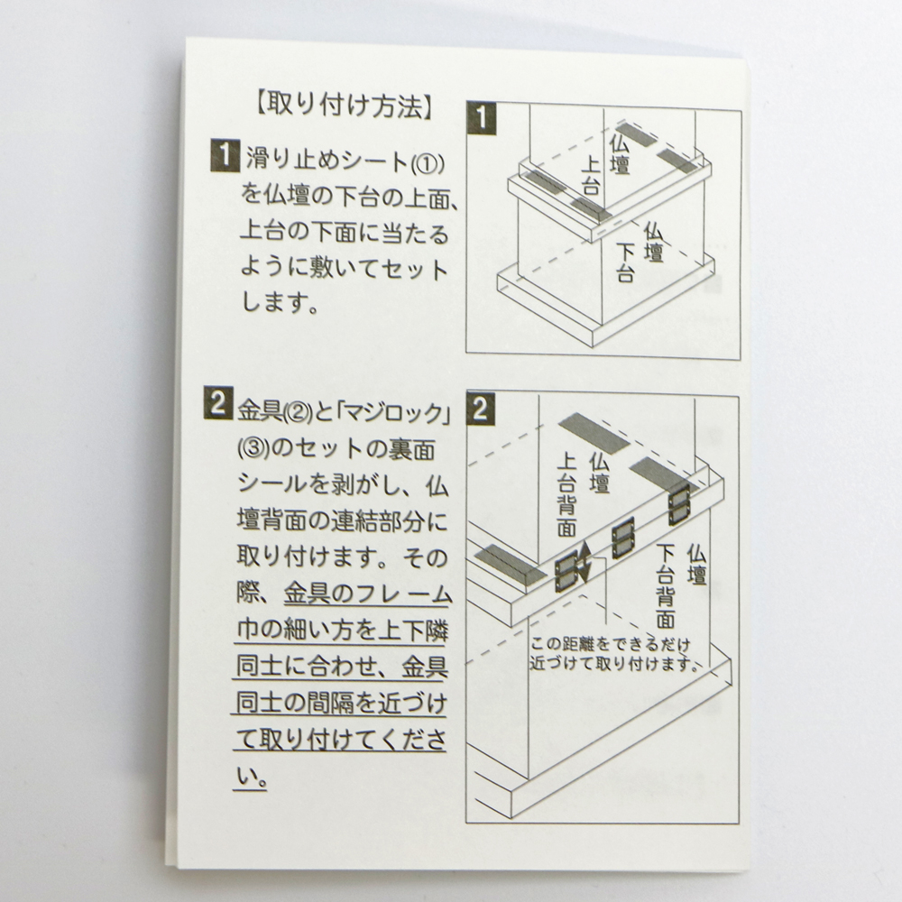 ?@滑り止めシートを仏壇の上台と下台の間に四か所、四隅に設置してください。