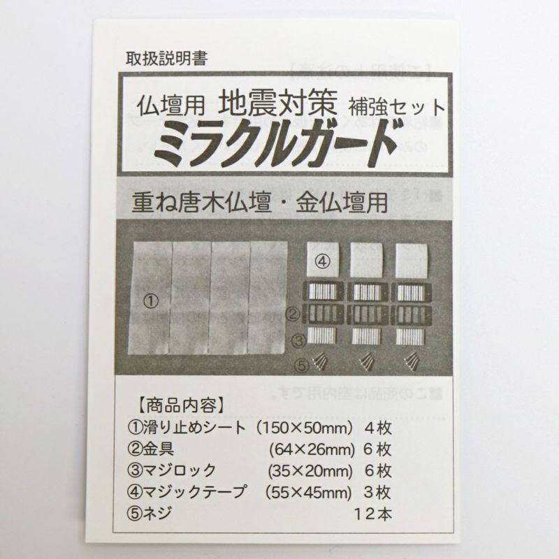 ?A屋根の外れる厨子型の場合は、金具2セット(4個)を厨子の上台・下台をつなぐように設置いたします。