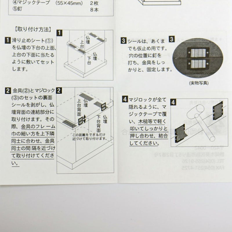 ?@滑り止めシートを仏壇の上台と下台の間に四か所、四隅に設置してください。