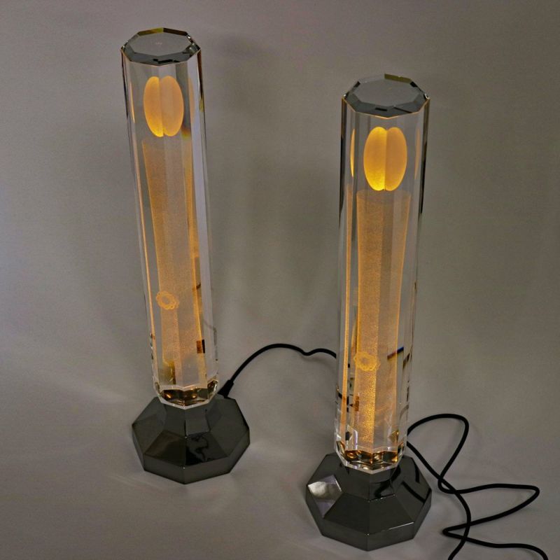 クリスタルガラス製/高さ36cm・直径9cm/1対(2本)/大型仏壇用/送料別途