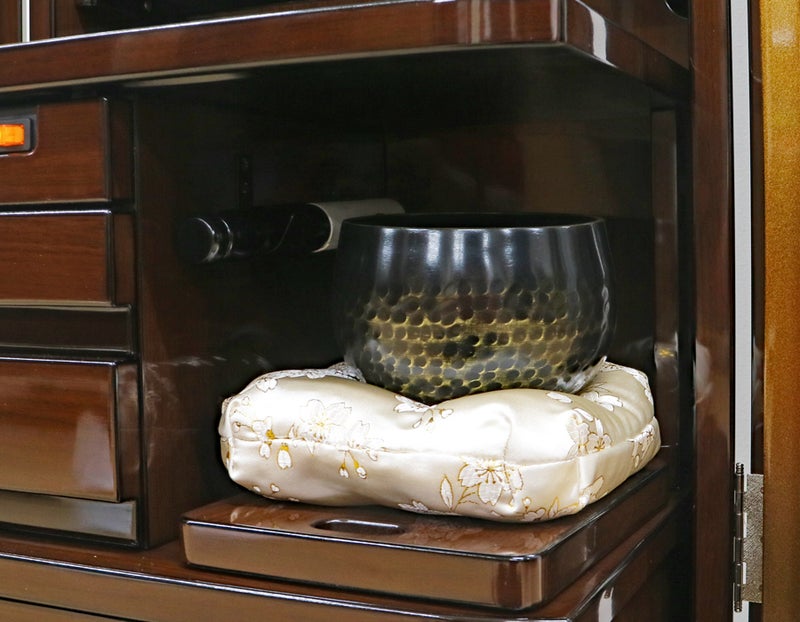 お厨子内部の円形デザインが、御本尊様からの慈悲の光を象徴。座るたびに、心が穏やかに、そして力強く整えられる「円満」の空間を演出します。一点集中の祈りを支える、新時代の荘厳美です。