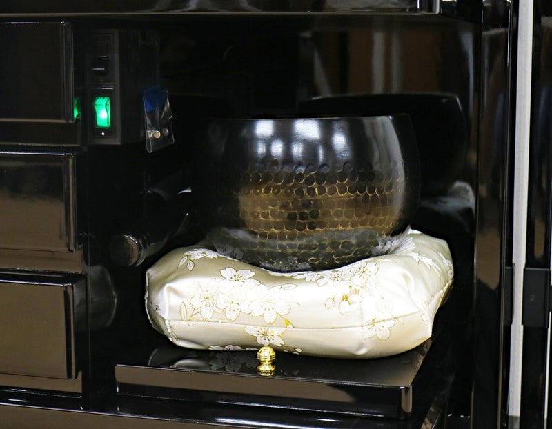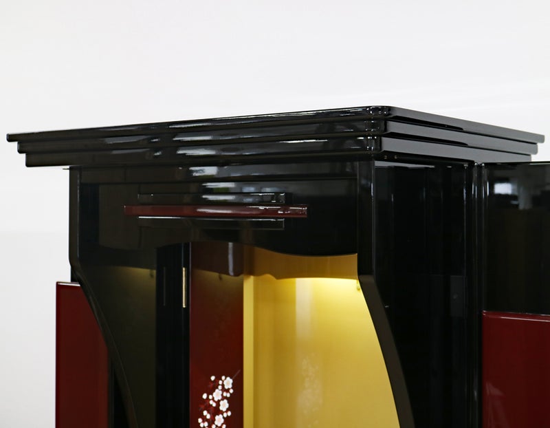 扉の両脇に施された繊細な蒔絵デザイン。暗闇を照らす光のように、あなたの祈りを優しく、かつ力強く包み込みます。この美しい桜を眺めるだけで、生命のギアがグッと上がります。