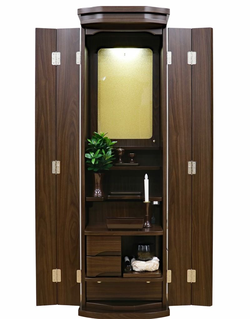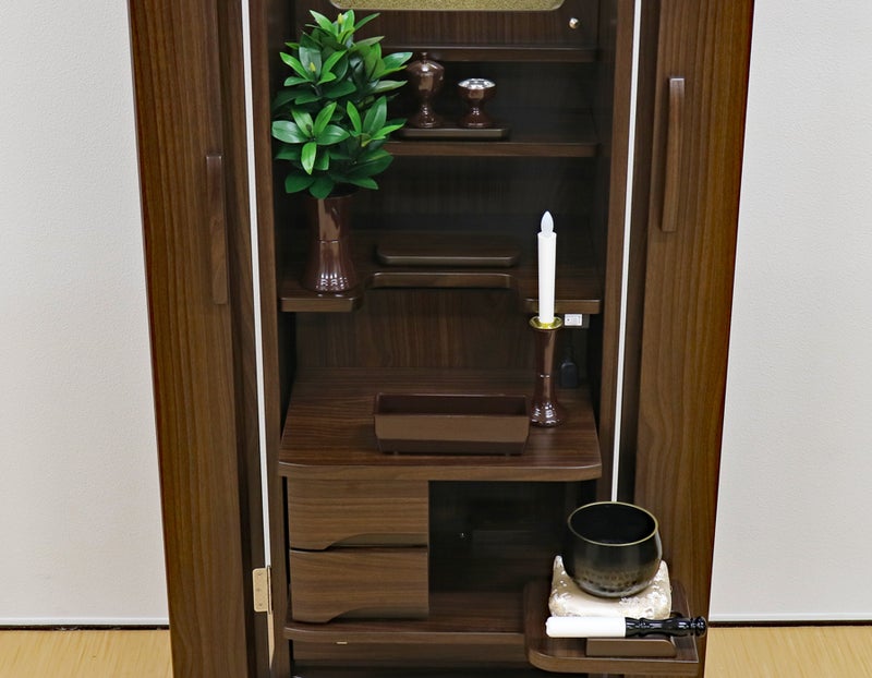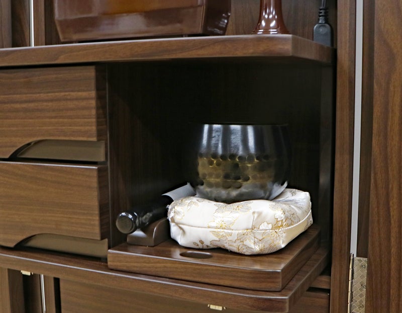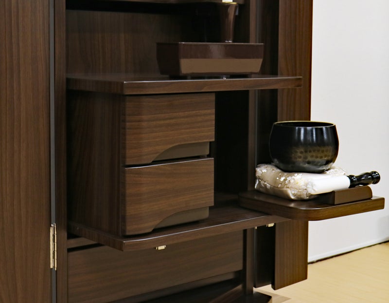 ウォールナットの深い色彩と、光を通すアクリルのコントラストが、お題目に向かうあなたの生命を清らかに、そして力強く引き立てます。この空間こそが、あなたの祈りを確信へと変え、宿命を打破する力となるのです。
