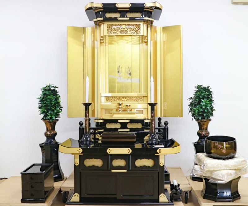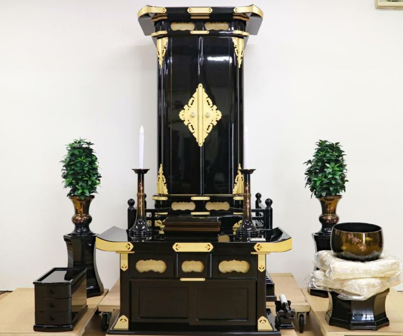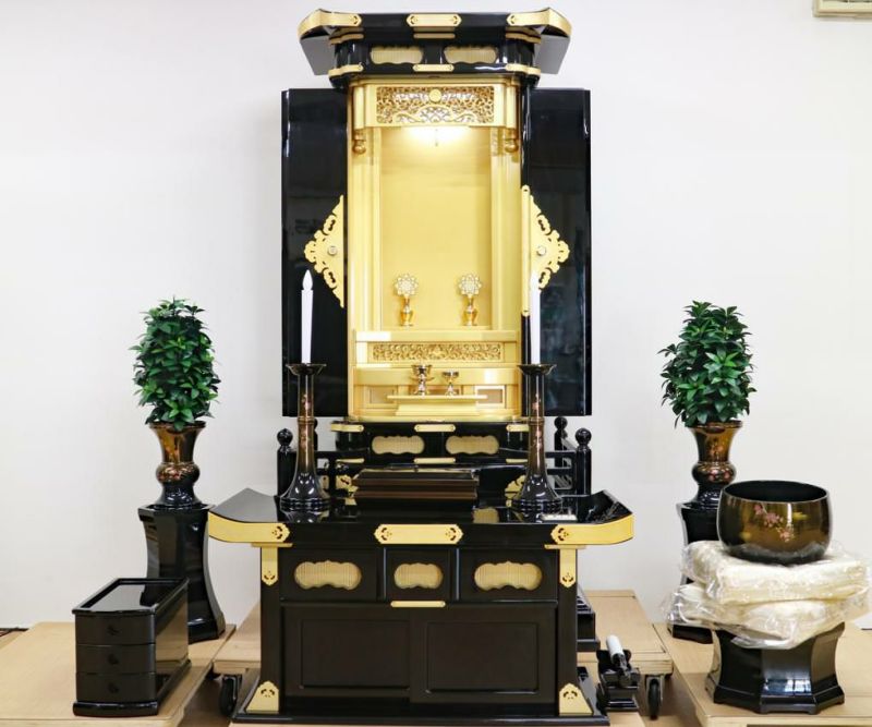 黒塗りのお仏壇なので、金色の金具がよく映えます。