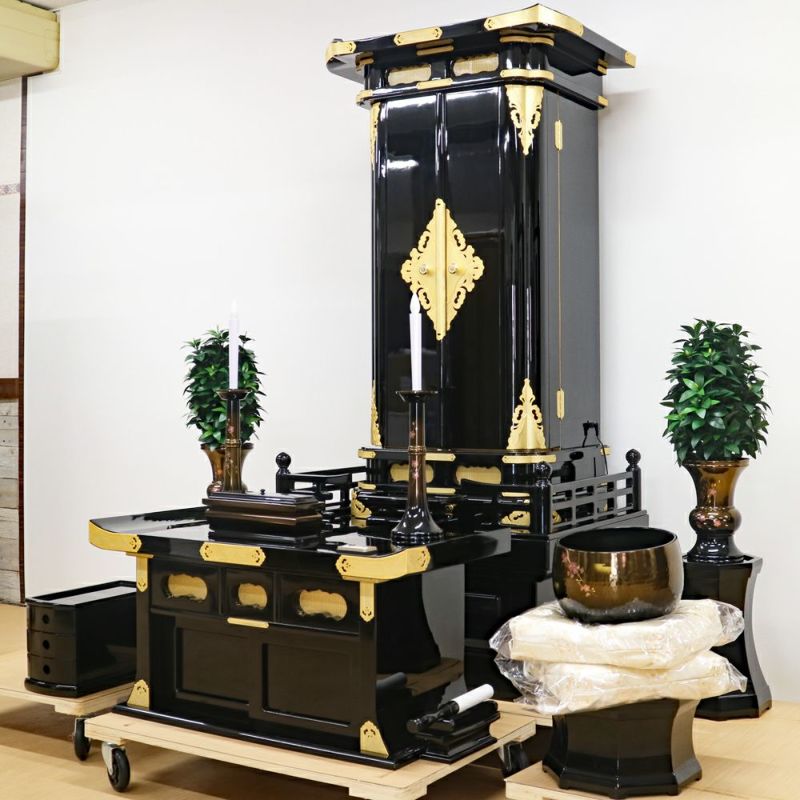 正徳60-30は、最高級の仏壇となっております。黒塗りですので、艶も上品です。高欄(仏壇お厨子下の柵)が高級感を醸し出します。