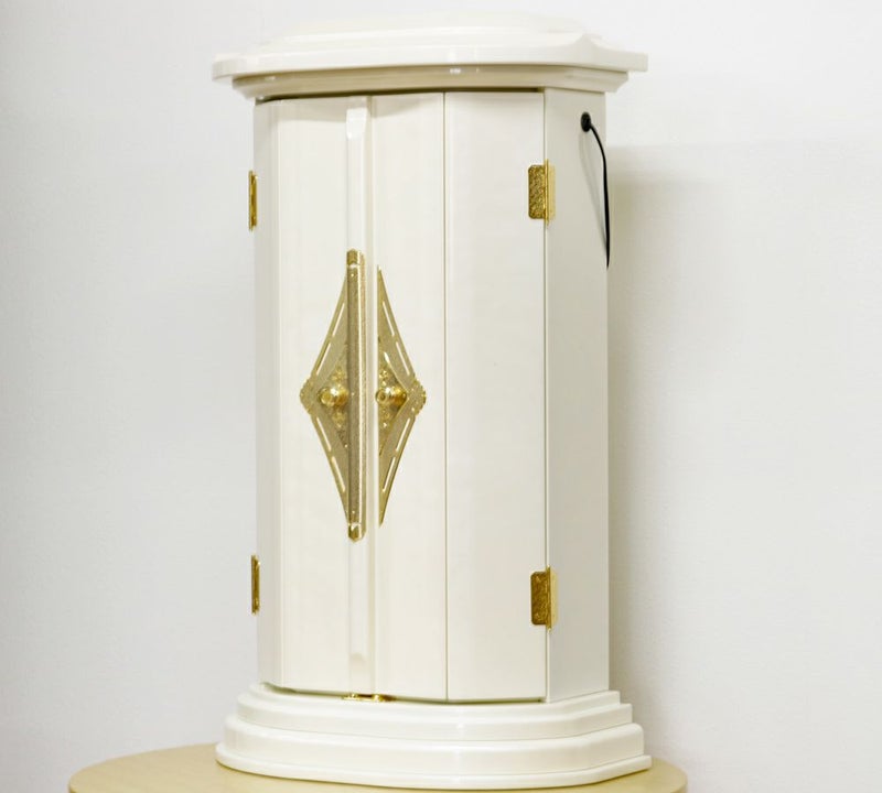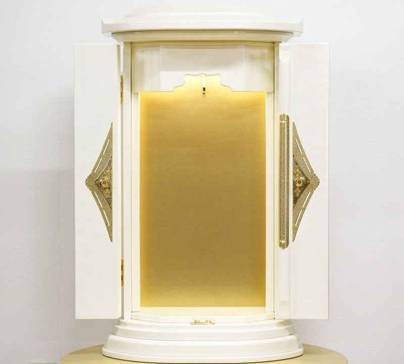 このパールホワイトのミニ厨子は、日本のみならず海外の同志からも絶大な支持を得ている、まさに「世界基準」の一台です。