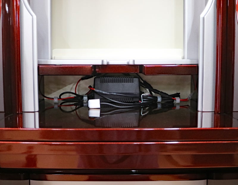 新しい時代のお題目の形。じっくりと、深く、生命を浄化するために、あえて「椅子式・液晶仕様」という最先端の形を採用しました。
