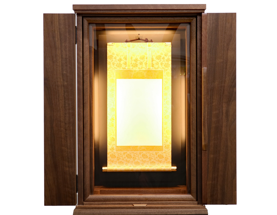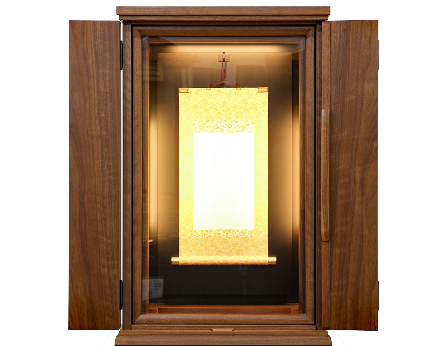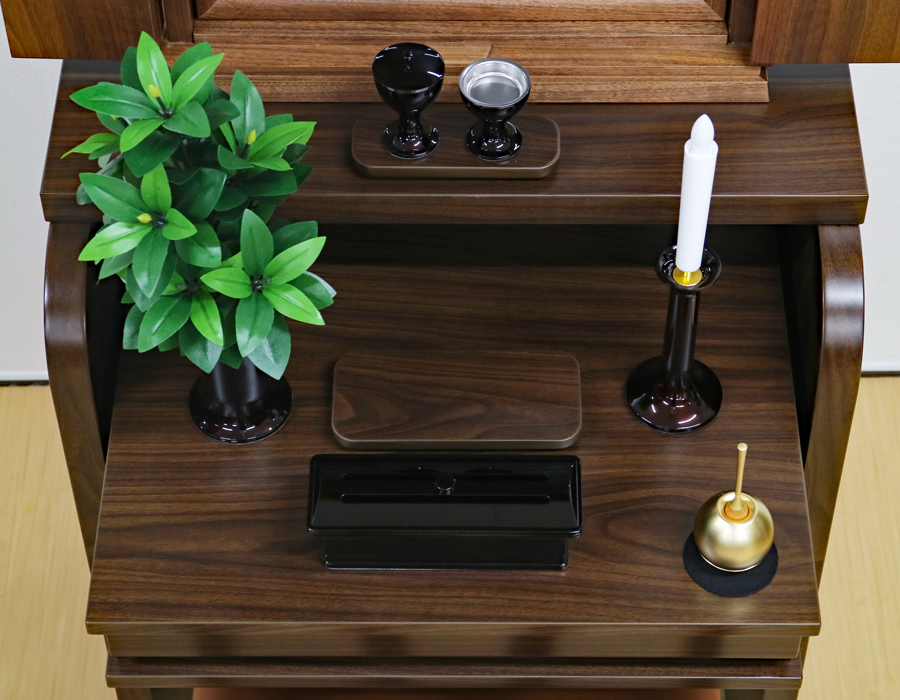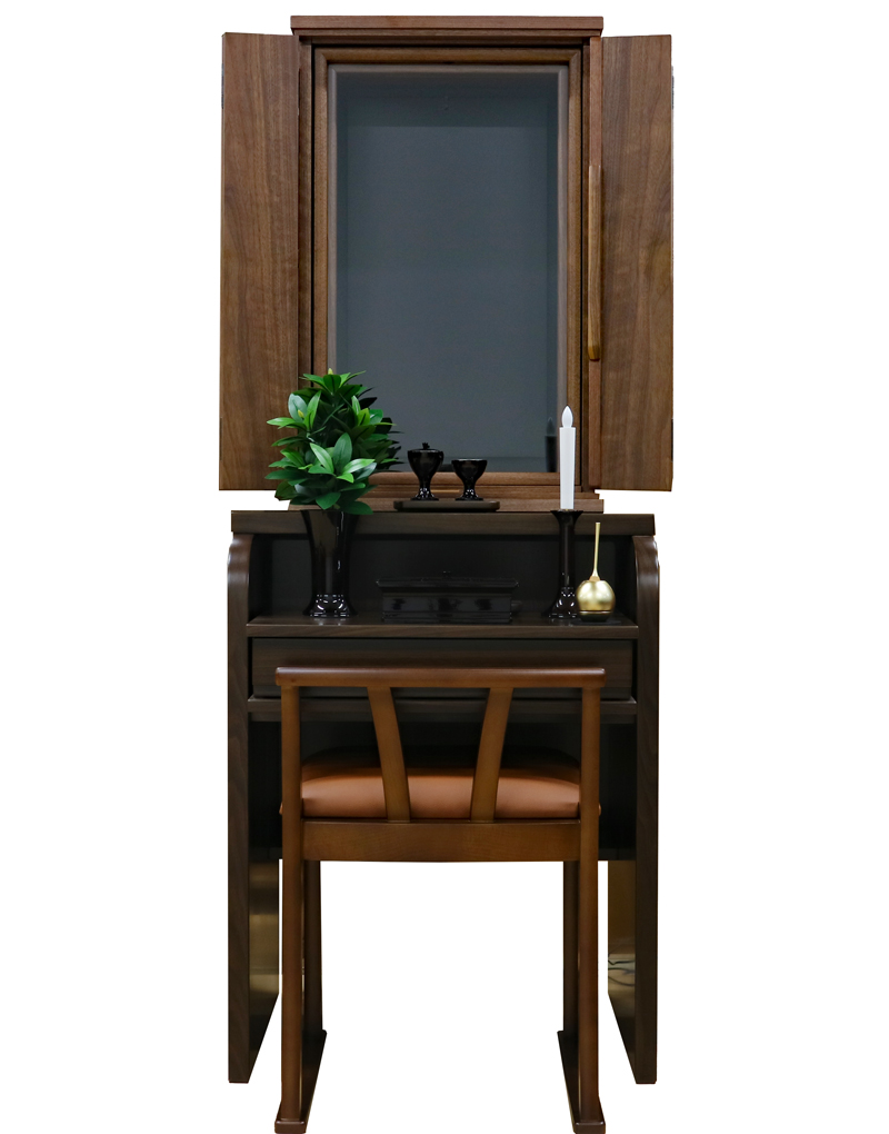 ウォールナット材を使用しておりますので、木の温かみある落ち着いたデザインのお仏壇です。