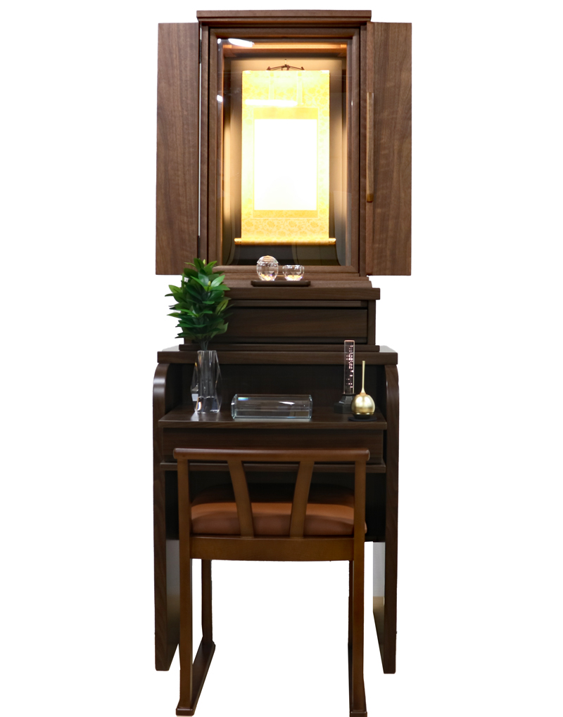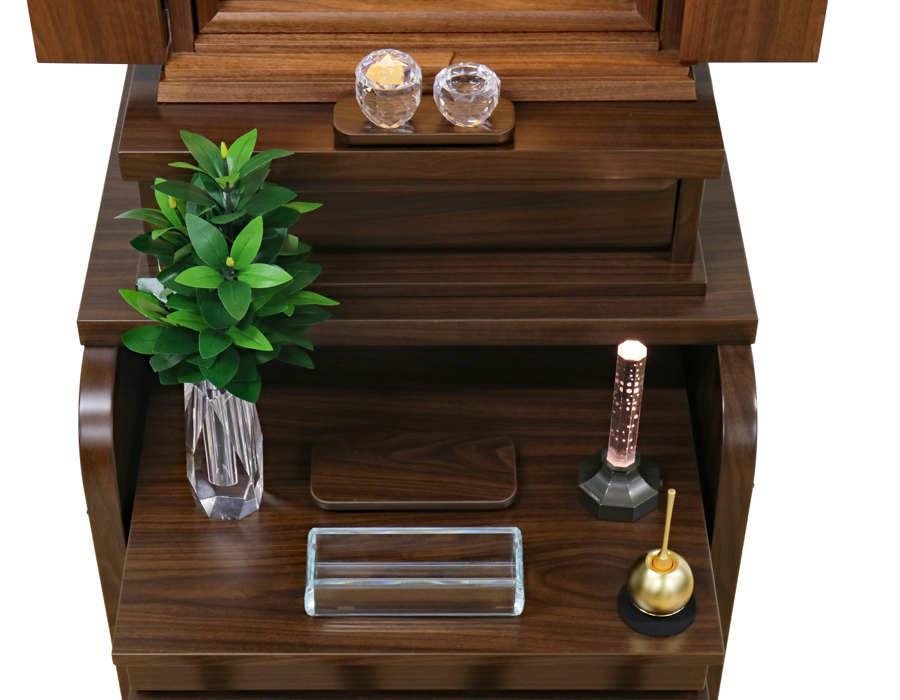 ウォールナット材を使用しておりますので、木の温かみある落ち着いたデザインのお仏壇です。