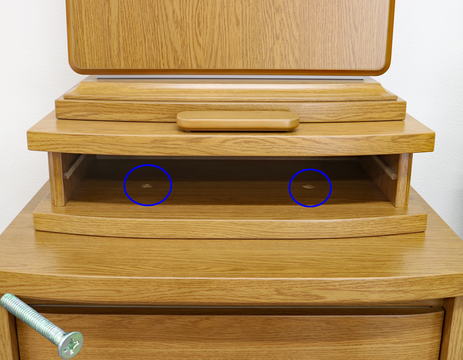 こちらのお仏壇には、お仏壇の本体・中台・下台を固定するため耐震ボルトが4本付属いたします。
