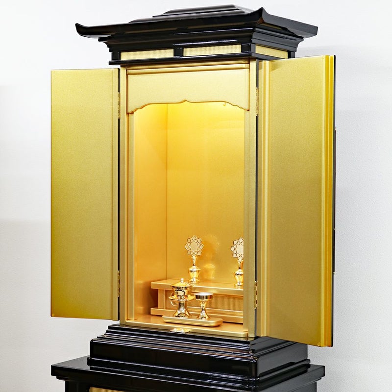 静寂の中で滑らかに動く電動厨子扉と、御本尊様を温かく照らすLED照明。コンパクトながら細部まで妥協のない造り込みが、あなたの毎日の勤行をドラマチックに演出します。