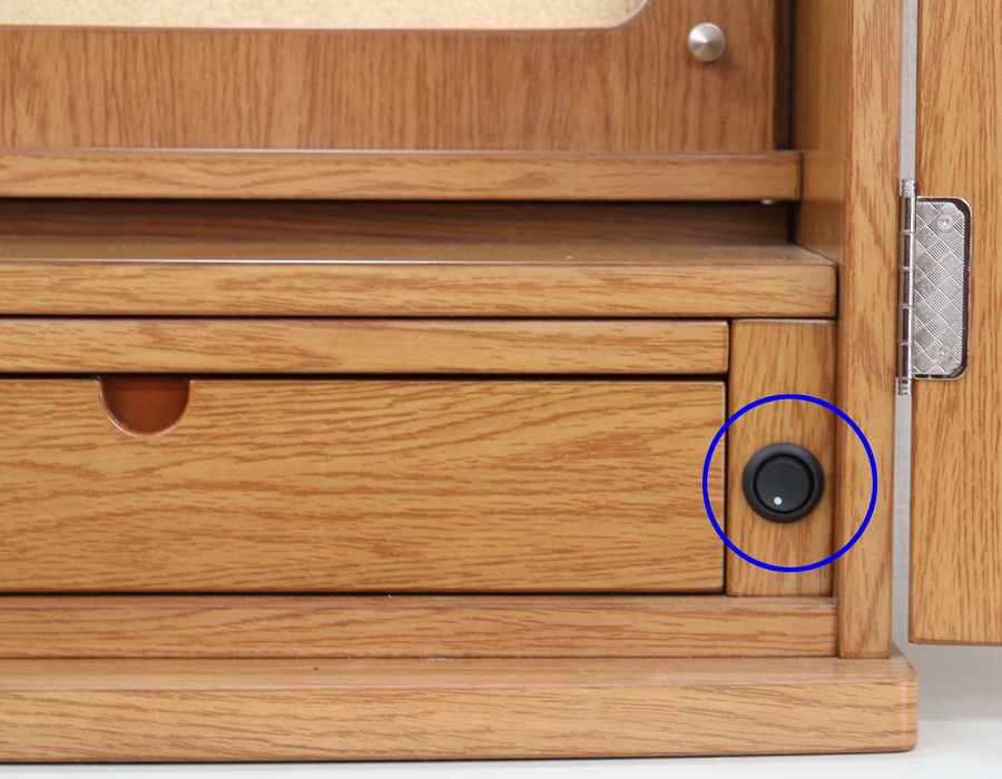 上記お写真の青丸の箇所にあるスイッチで、照明の入り切りが行えます。