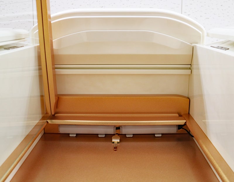 無駄を削ぎ落としたスタイリッシュなフォルムに、御本尊様を温かく照らすLED照明を完備。和室、洋室、マンションのリビング、どんな場所にも完璧に調和する次世代の宝塔です。
