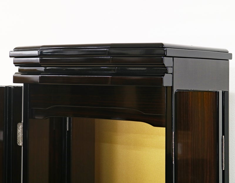 「拠点として、最高に格式高い国産仏壇で常住御本尊様をお迎えしたい」「末代まで語り継がれるような、不動の宝塔をわが家に築きたい」——そんな広布の勇者のために、日本の熟練職人が注文を受けてから一台ずつ魂を込めて作り上げるのが、この『輝(かがやき)』黒檀モデルです!