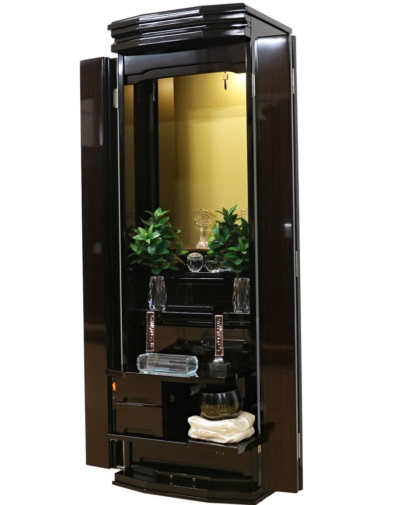 「拠点として、最高に格式高い国産仏壇で常住御本尊様をお迎えしたい」「末代まで語り継がれるような、不動の宝塔をわが家に築きたい」——そんな広布の勇者のために、日本の熟練職人が注文を受けてから一台ずつ魂を込めて作り上げるのが、この『輝(かがやき)』黒檀モデルです!