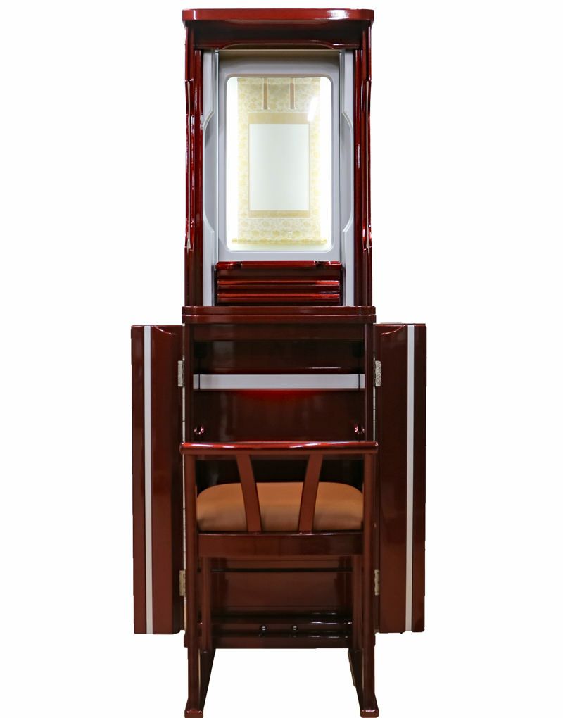 本体・下台・イスの3点セット。深く腰を据えて祈ることで、心身が安定し、祈りがより深く、持続的なものになります。洗練されたデザインが、現代のリビングにも調和します。