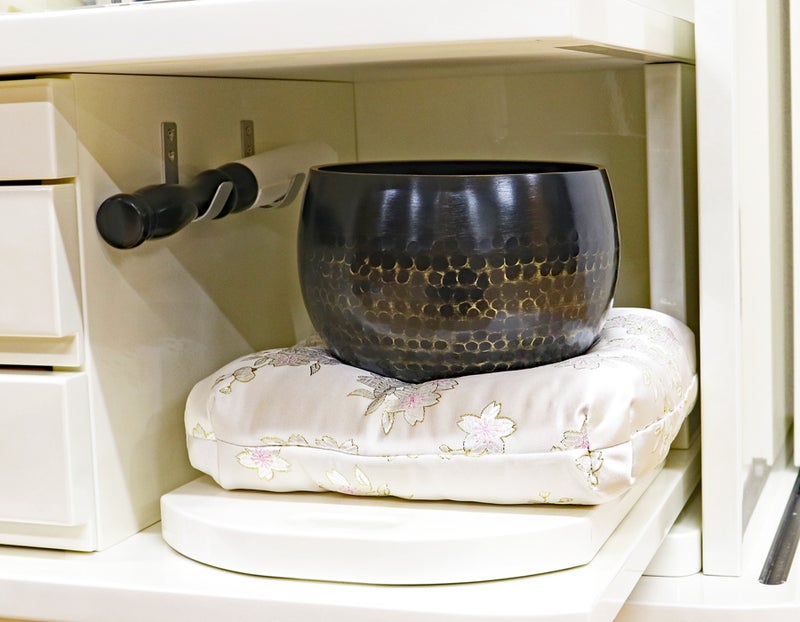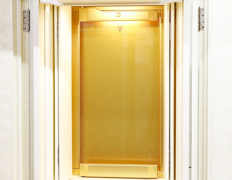 大切な勤行の始まりをスマートに演出。静かに、そして力強く開閉する電動扉は、日常を「虚空会の儀式」へと切り替えるスイッチとなります。機能美と信心の歓喜が融合した設計です。