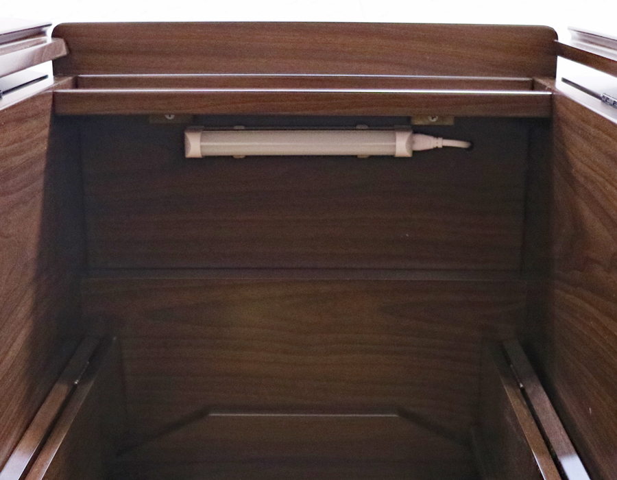 お厨子を開くと美しく煌びやかな金色がご本尊様を荘厳してくれます。内部にはLED照明も付属していますのでご本尊様を明るく照らしてくれます。