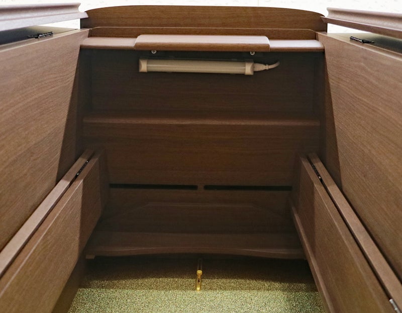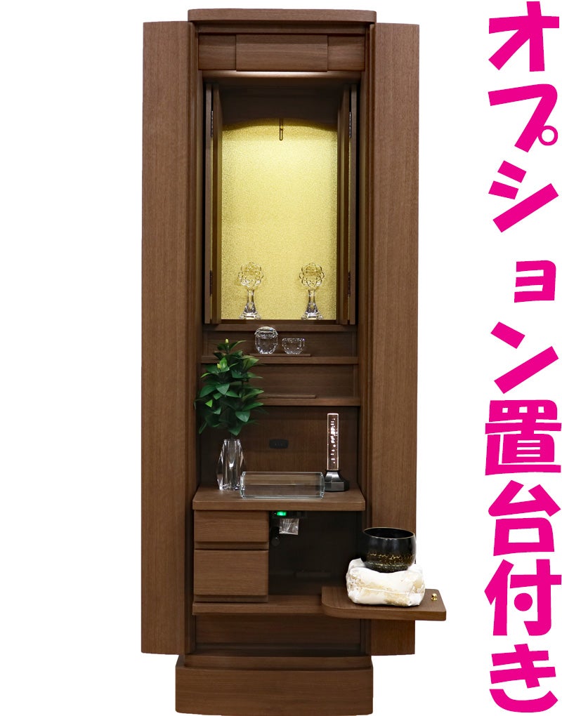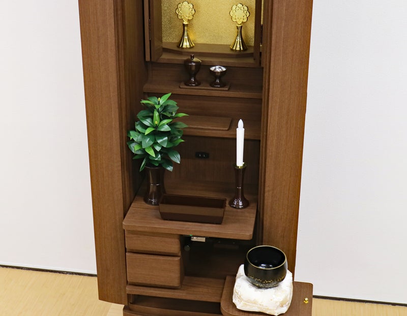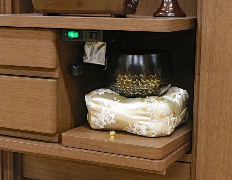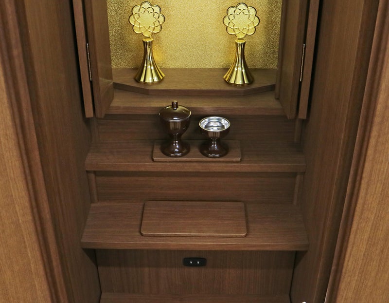 ボタン一つで静かに左右へ開く電動扉は、毎日の祈りを特別な瞬間へと変えます。故障にも強い信頼のシステムを採用し、末永くあなたの「勝利の本陣」を守り抜きます。