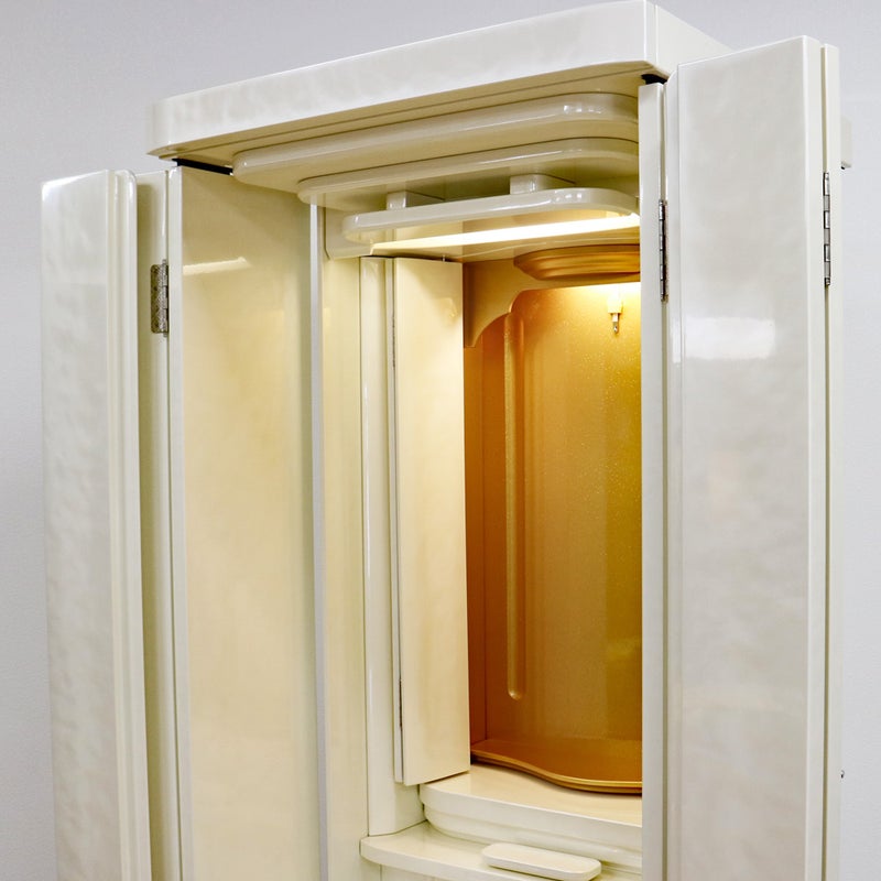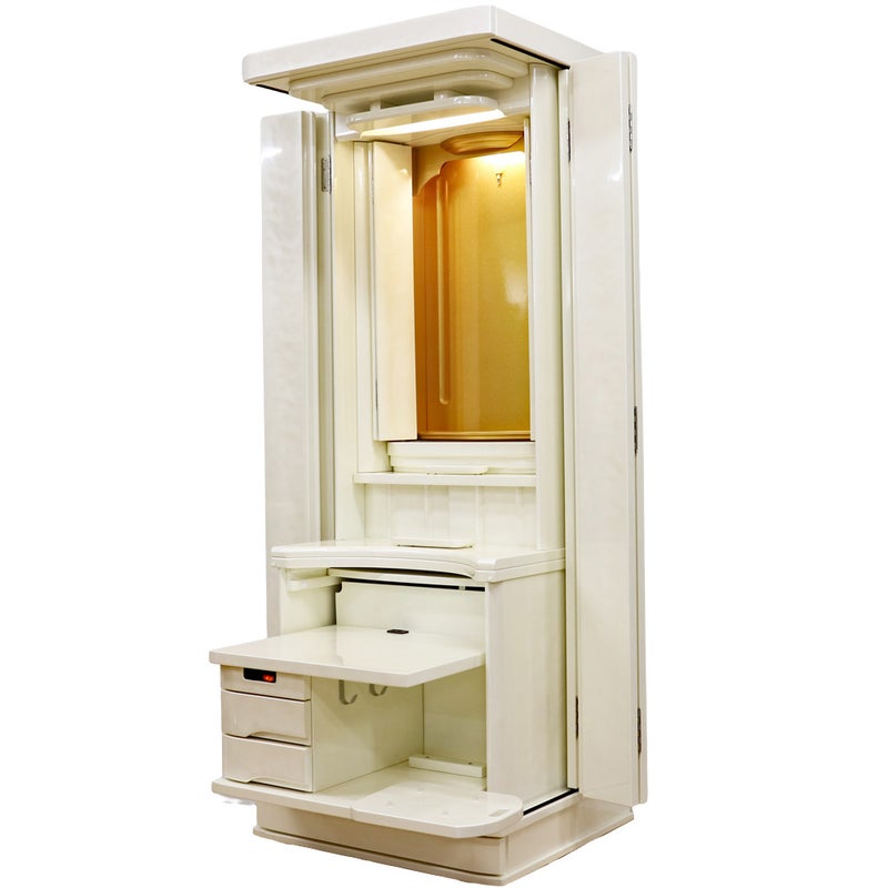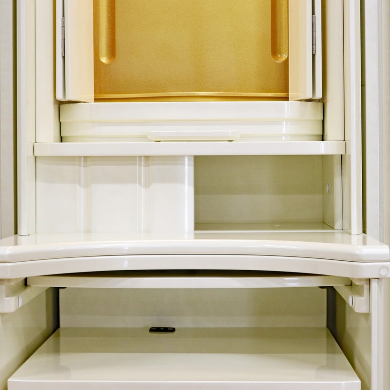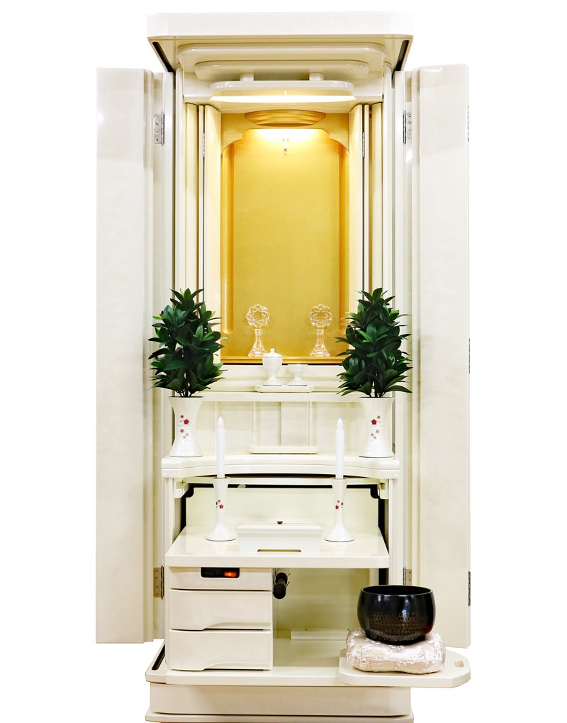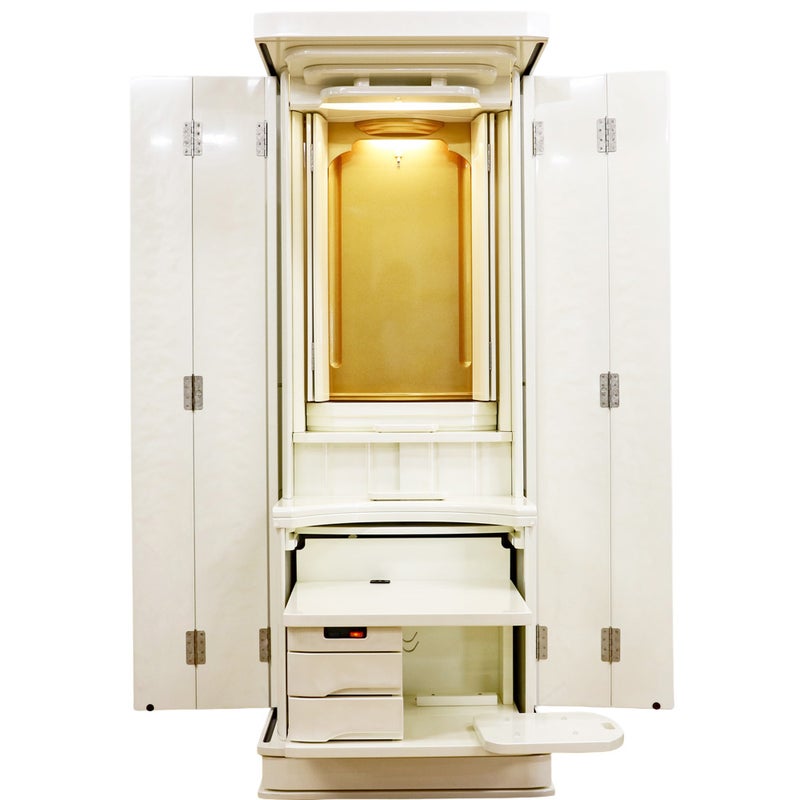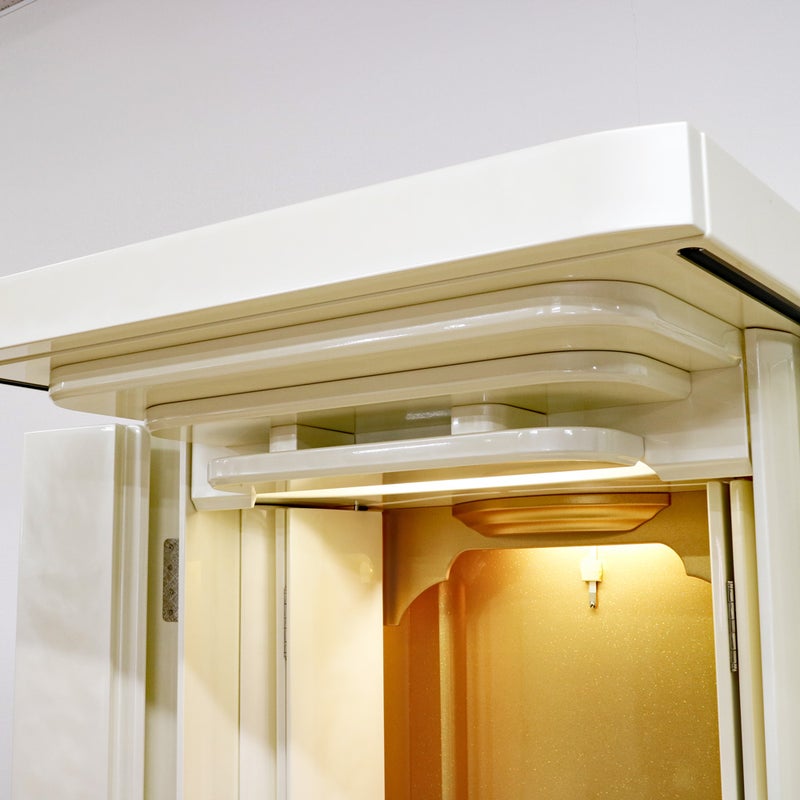 「拠点として、常住御本尊様を最高に荘厳したい」「でも、ただの白ではなく、奥行きのある気品を纏いたい」——そんな感性豊かな広布の勇者のために、注文を受けてから真心を込めて作成するのが、この『茜』パールホワイト・常住対応モデルです!