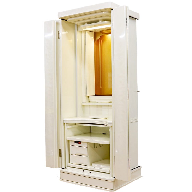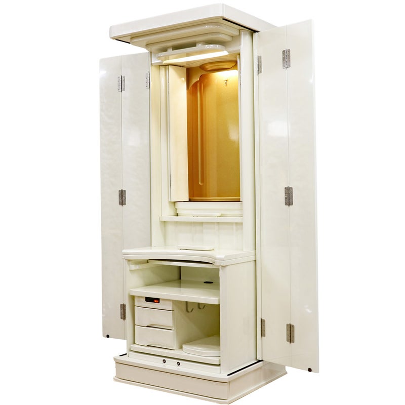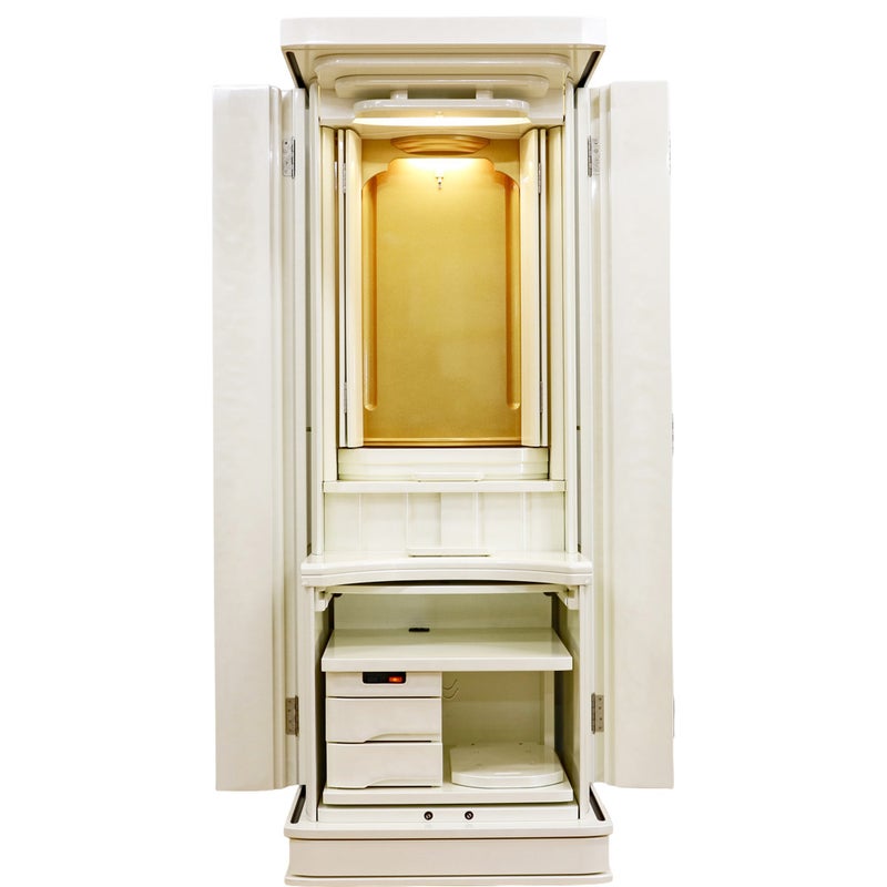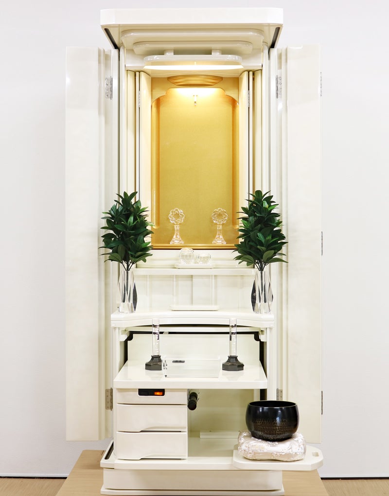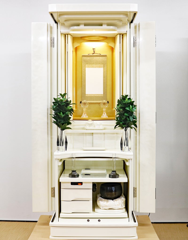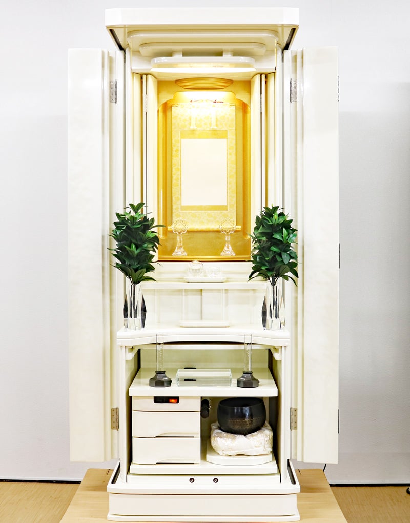 「拠点として、常住御本尊様を最高に荘厳したい」「でも、ただの白ではなく、奥行きのある気品を纏いたい」——そんな感性豊かな広布の勇者のために、注文を受けてから真心を込めて作成するのが、この『茜』パールホワイト・常住対応モデルです!