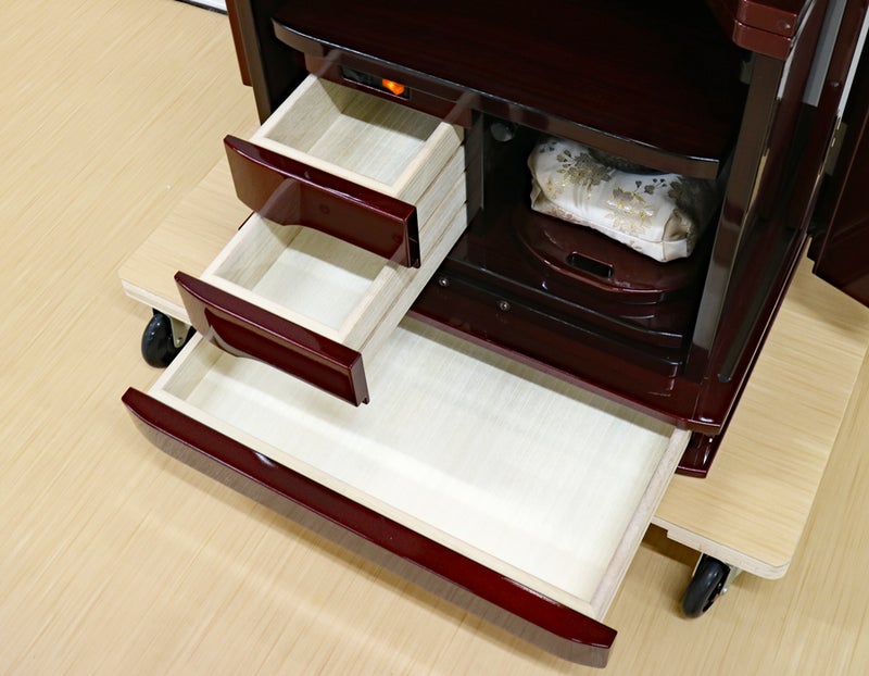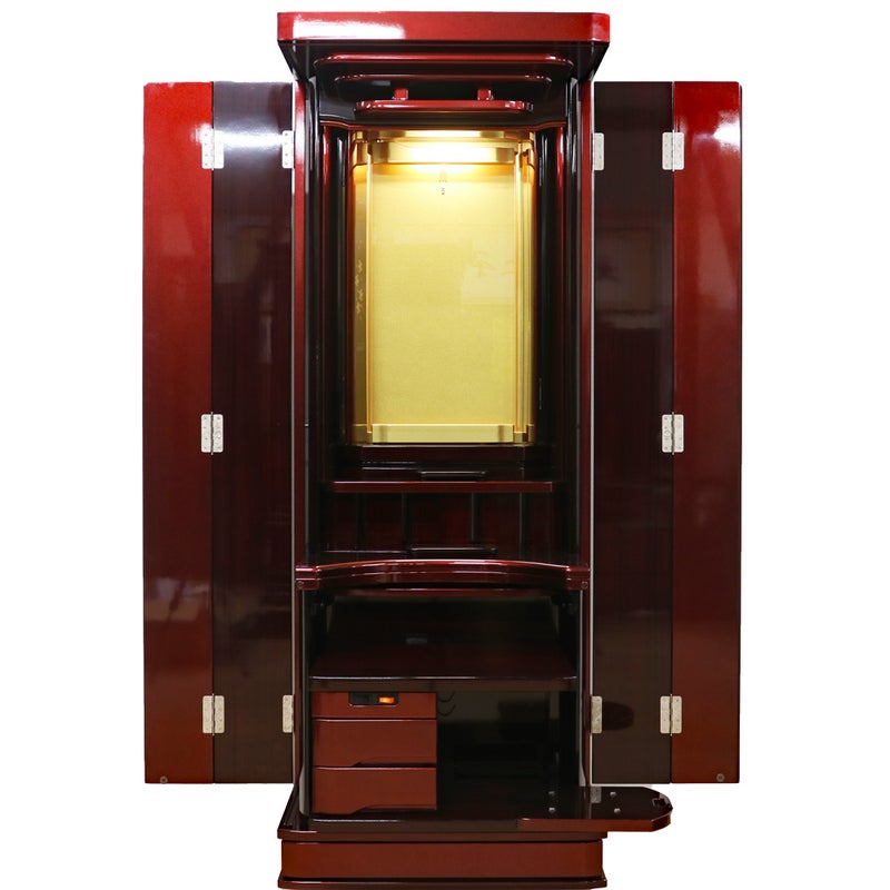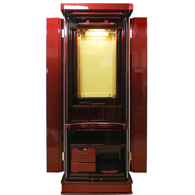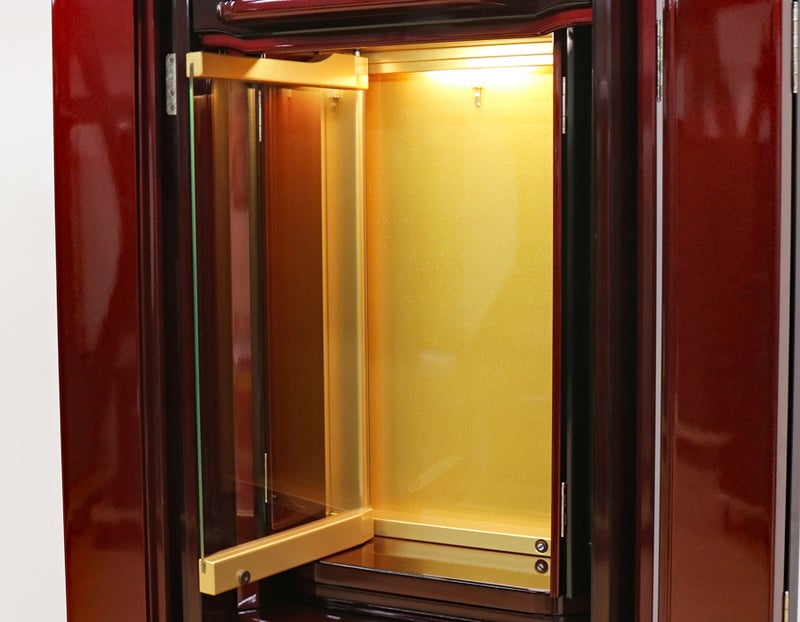 日本の最高の塗装技術「ポリウレタン特殊塗装」を駆使した仕上げ。滑らかな手触りと深い艶が、お仏壇としての風格を一段と高めています。量産品にはない、あなただけの特別な一台をお届けします。