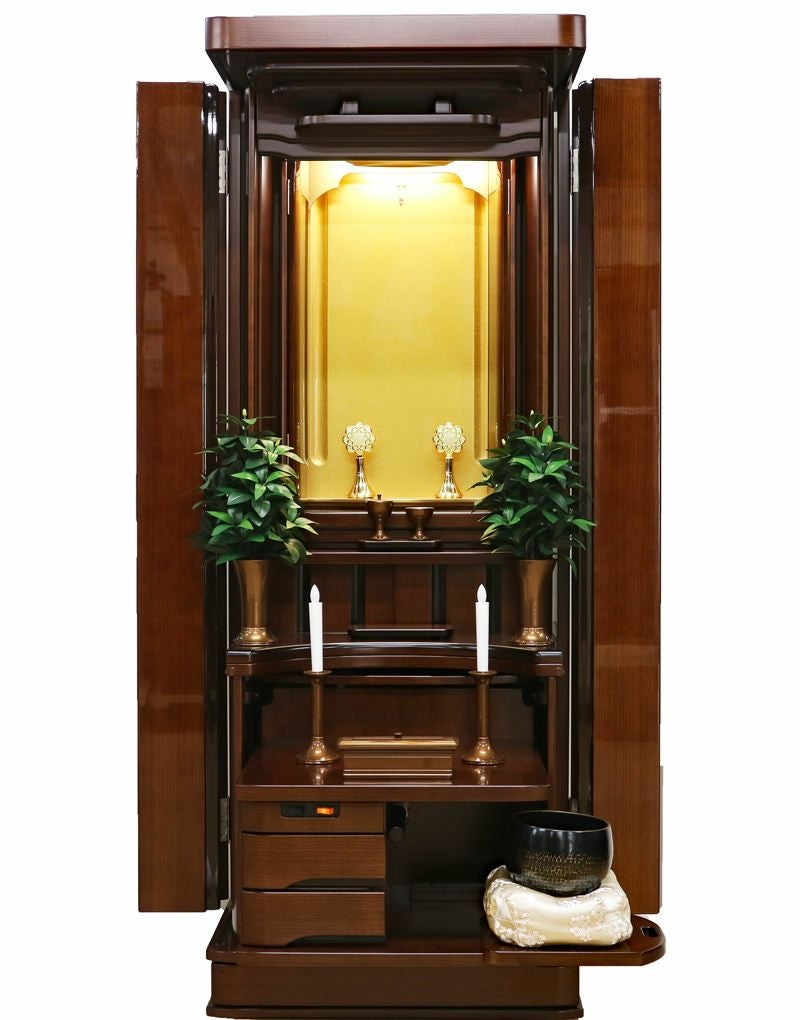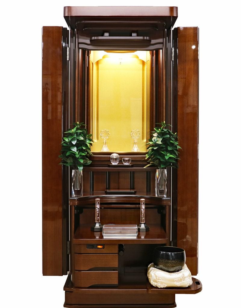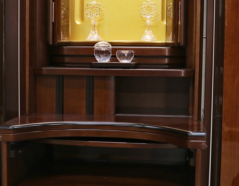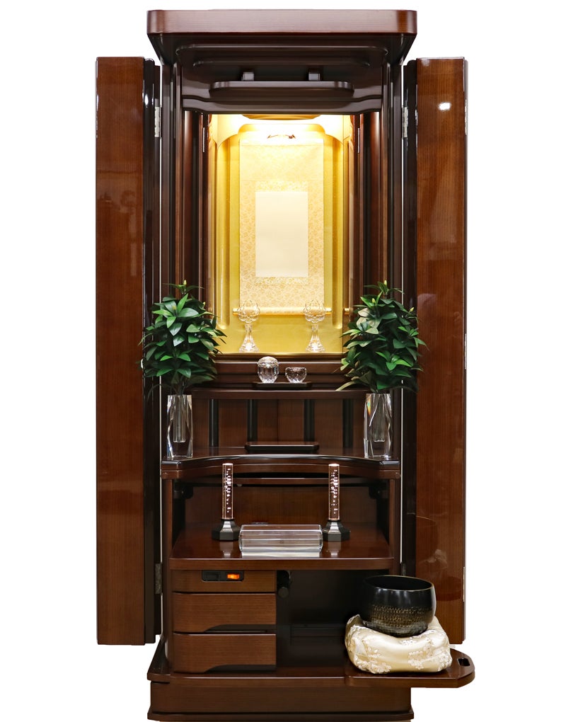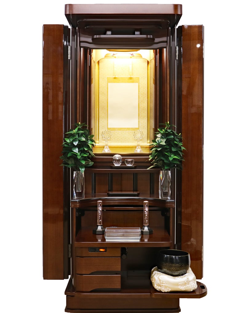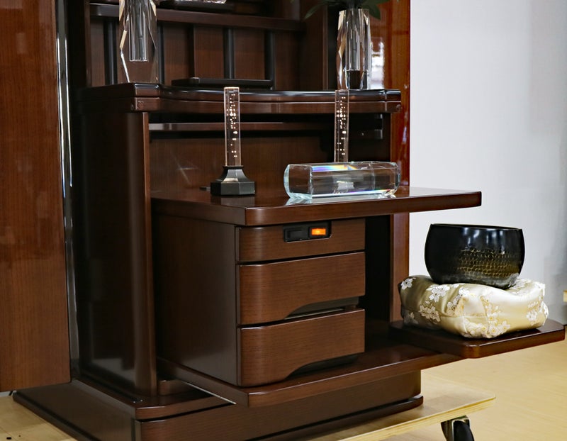 コンパクトな家具調の佇まいながら、常住御本尊様にも完全対応。どのような御本尊様も、ゆとりを持って最高に美しく荘厳できる。拠点や会場として、最高の格式と安心を提供します。