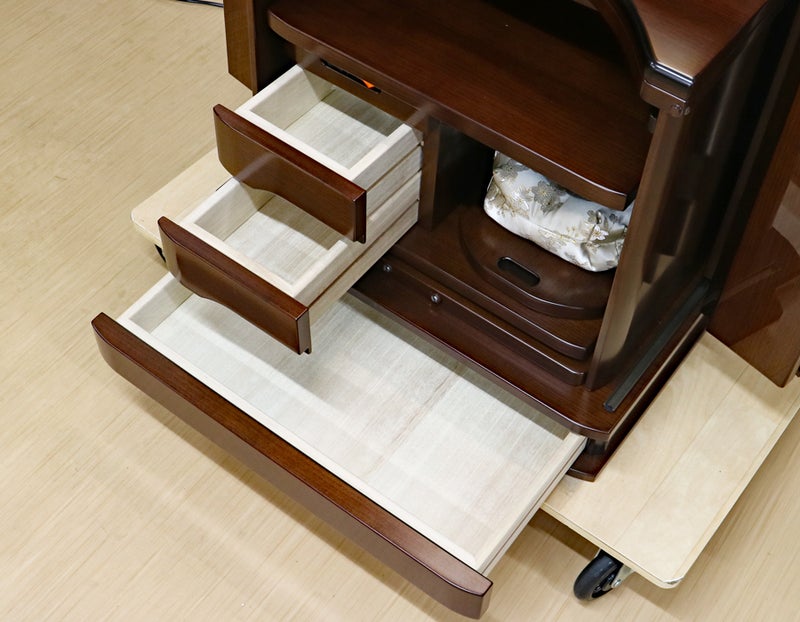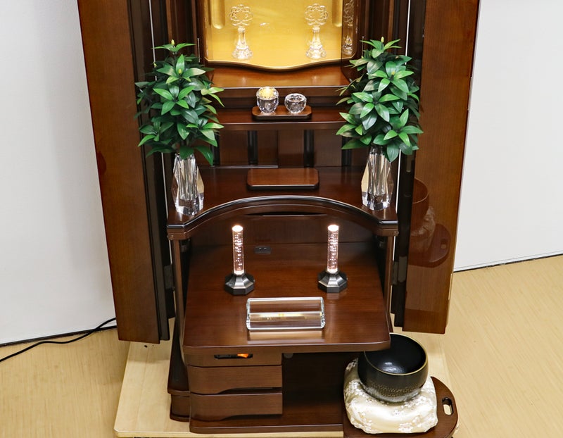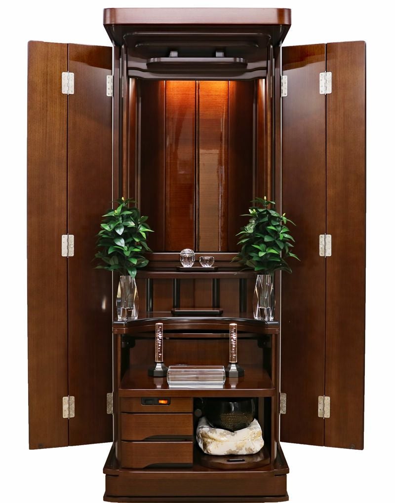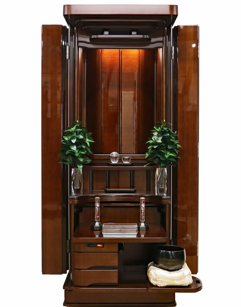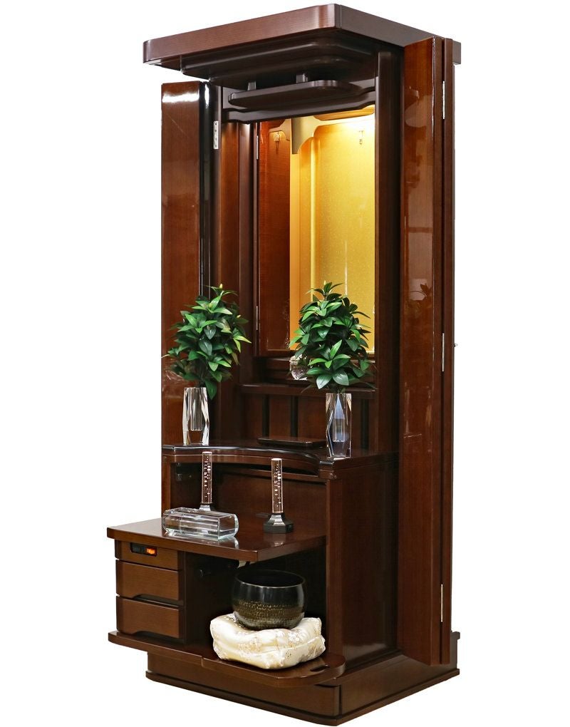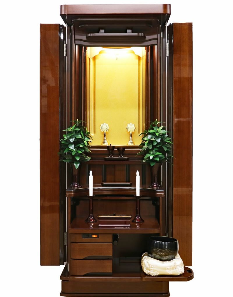コンパクトな家具調の佇まいながら、常住御本尊様にも完全対応。どのような御本尊様も、ゆとりを持って最高に美しく荘厳できる。拠点や会場として、最高の格式と安心を提供します。