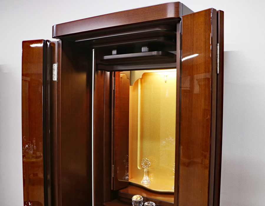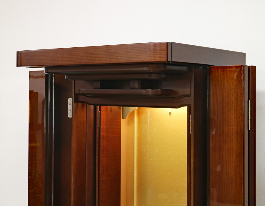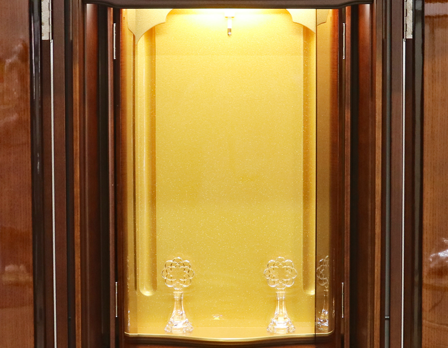 お仏壇内部に2箇所LED照明が設置されておりますので、ご本尊様を明るく拝すことができます。