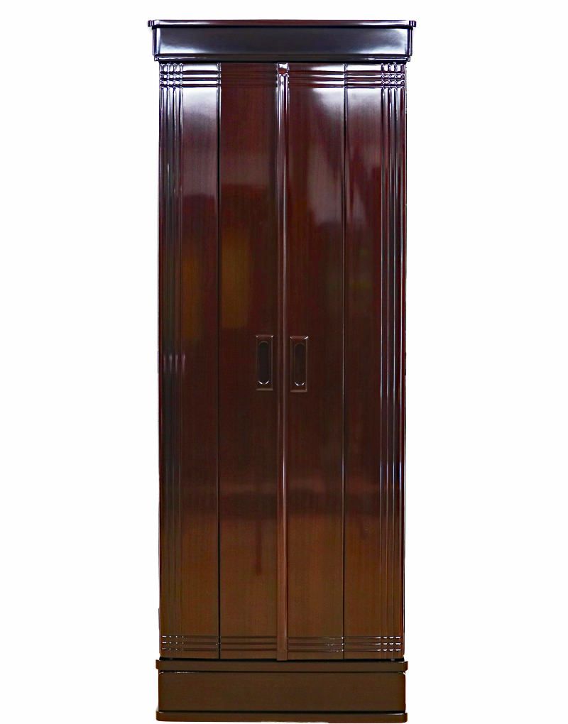 見てください、このローズウッド調の温かみのある色彩。最新のプリント技術が生み出す高精細な木目と、扉を彩る「しだれ桜」の蒔絵は、まさに「一家の和楽」の象徴です。プリント仕上げだからこそ、日焼けや変色に強く、サッと拭くだけでこの美しさが永く保てるのが最大のメリット。