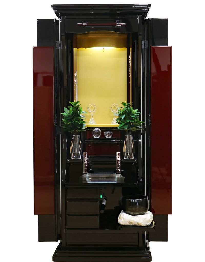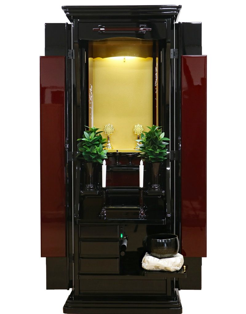 大切な御本尊様をゆとりを持って荘厳できるお厨子。ボタン一つで静かに開閉する電動扉が、勤行の始まりをドラマチックに演出します。美しさの中に、確かな実用性が光る一台です。